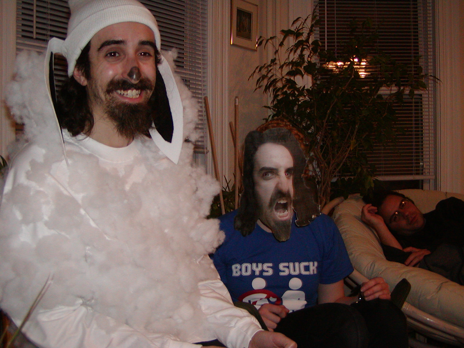 There have been a number of “incidents” in which seedy folks have decided that they would attempt to steal my identity…probably because they were jealous of all the people pointing and laughing at me on the subway and stuff like that. One Halloween (2002 I believe), two people both came dressed as me to a party. They were quite embarrassed to find themselves wearing the same costume. Well, just last night, it happened again. A mysterious fellow showed up at a rock show, taking on my identity, fighting for the social justice I demand. I don’t know who that masked man was, but all of these clones have made me proud, for they have always wanted the same things that I want: The United States of America to be the greatest country in the history of the World, justice and freedom for the follicularly inclined, and an end to the Communist movement to play other people’s songs instead of your own at local rock shows.